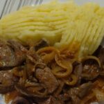 Iscas em cebolada à Portuguesa com purè